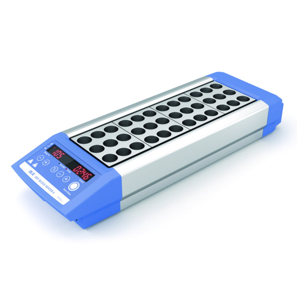 IKA Digital Block Thermostat Dry Block Heater 4 S 3, for 4 Aluminium Block Inserts, up to 120 °C, with Swiss Plug