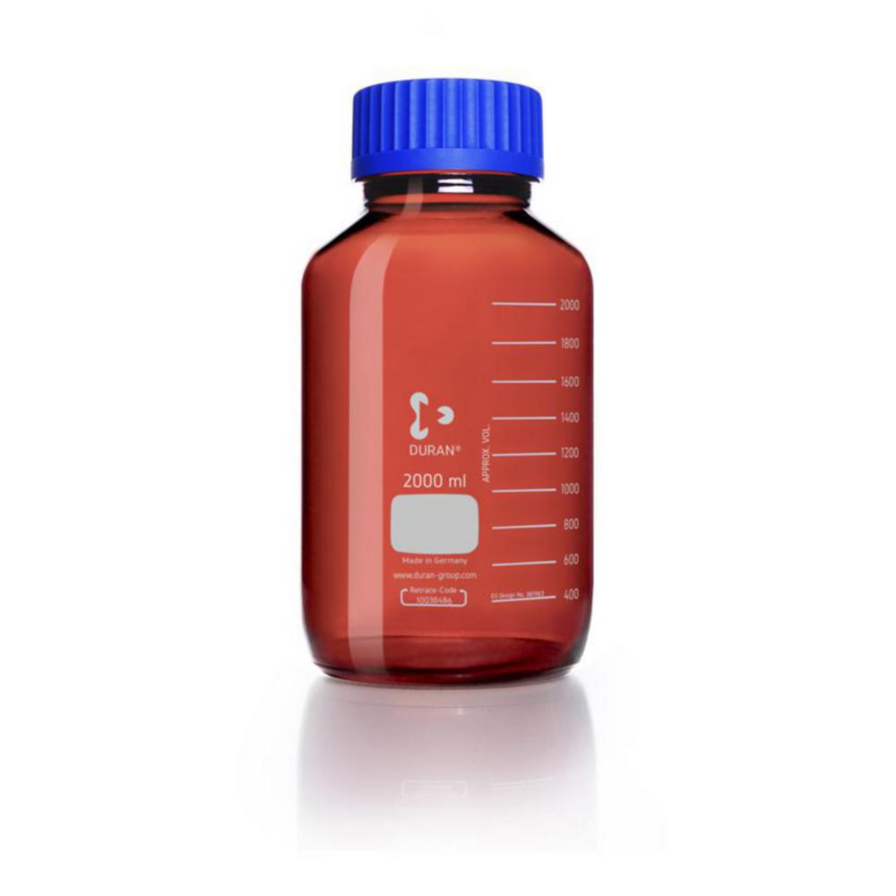 The DWK Duran Thread Bottle 2000 mL Wide Neck Amber with GLS 80 Thread is designed for secure storage of light-sensitive liquids in laboratory environments. Made from high-quality amber borosilicate glass, this bottle provides UV protection, ensuring that light-sensitive solutions remain intact. The wide neck and GLS 80 thread design offer a leak-proof seal, making it a reliable solution for safe chemical storage and handling in both research and industrial labs.