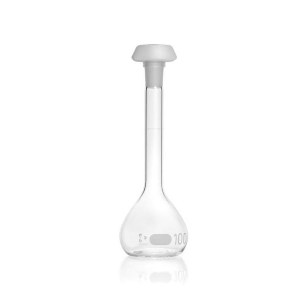 DURAN® Volumetric flask 100 ml, class B white graduation, with one graduation mark, polyethylene stopper, NS 14/23