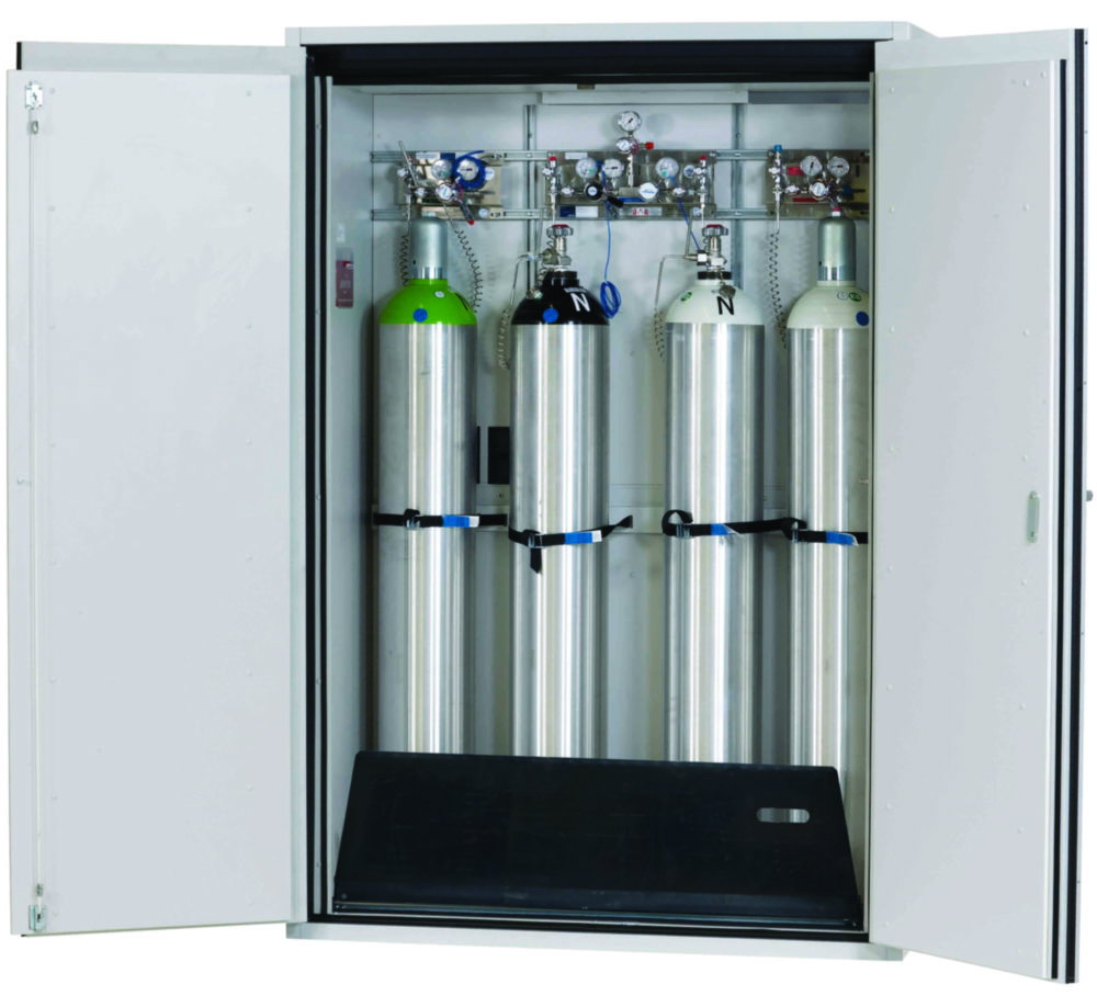 Gas cylinder cabinet G-ULTIMATE-90 WD RAL 7035 lightgrey, 1400x615x2050mm, incl. moutning rail, bottle holder,