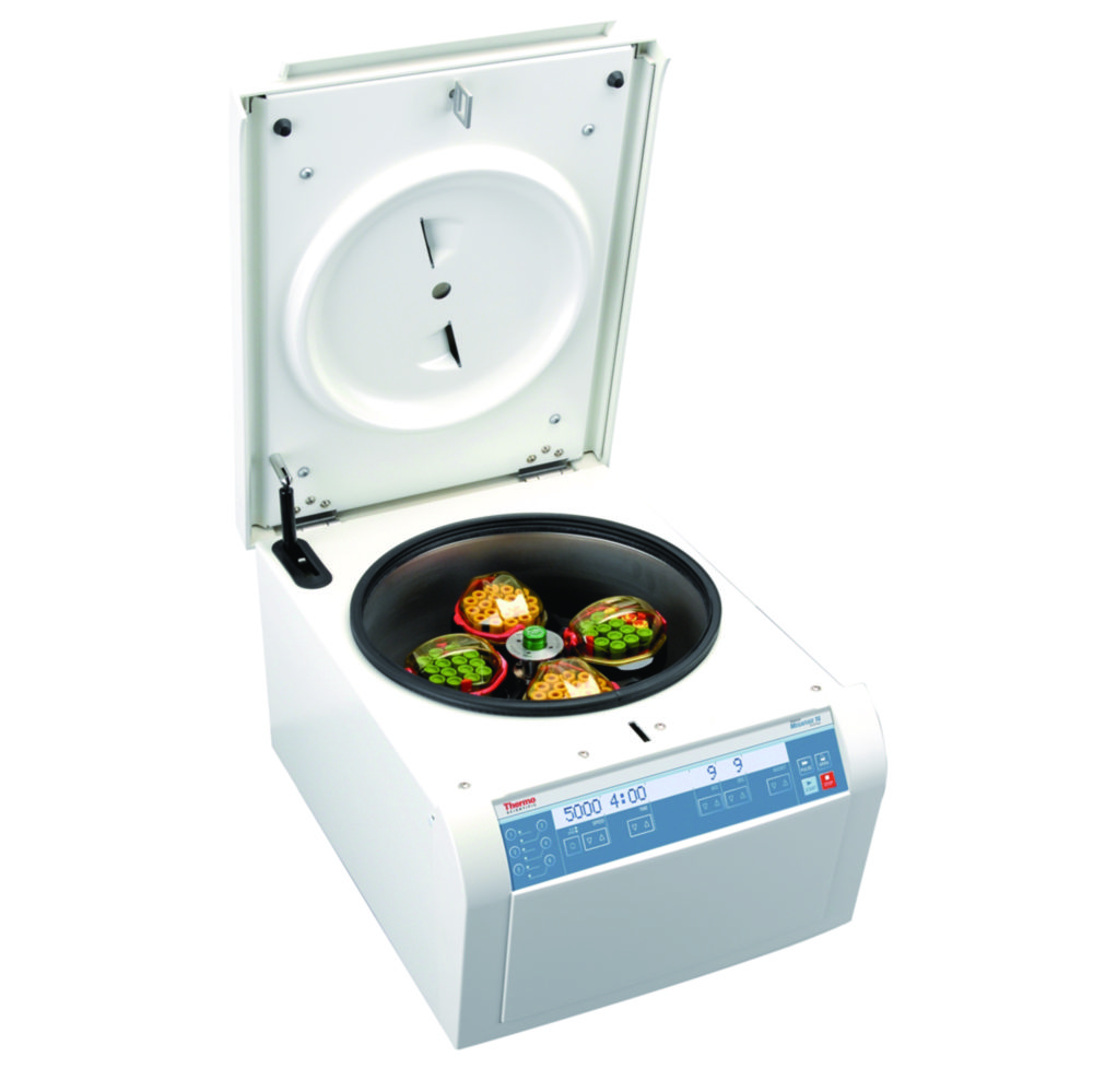 Benchtop centrifuges for routine applications and processing temperature-sensitive samples. High capacity, small footprint, curved design.Low energy consumption for standard protocols, with energy saving function. 6 direct-access programms and quick-select keys for frequently used programms. Motorised lid lock (optional: automatic lid opening at the end of the run). Intuitive controls, glove- and detergent-friendly control panel. Choice of 9 acceleration and 10 braking profiles.
