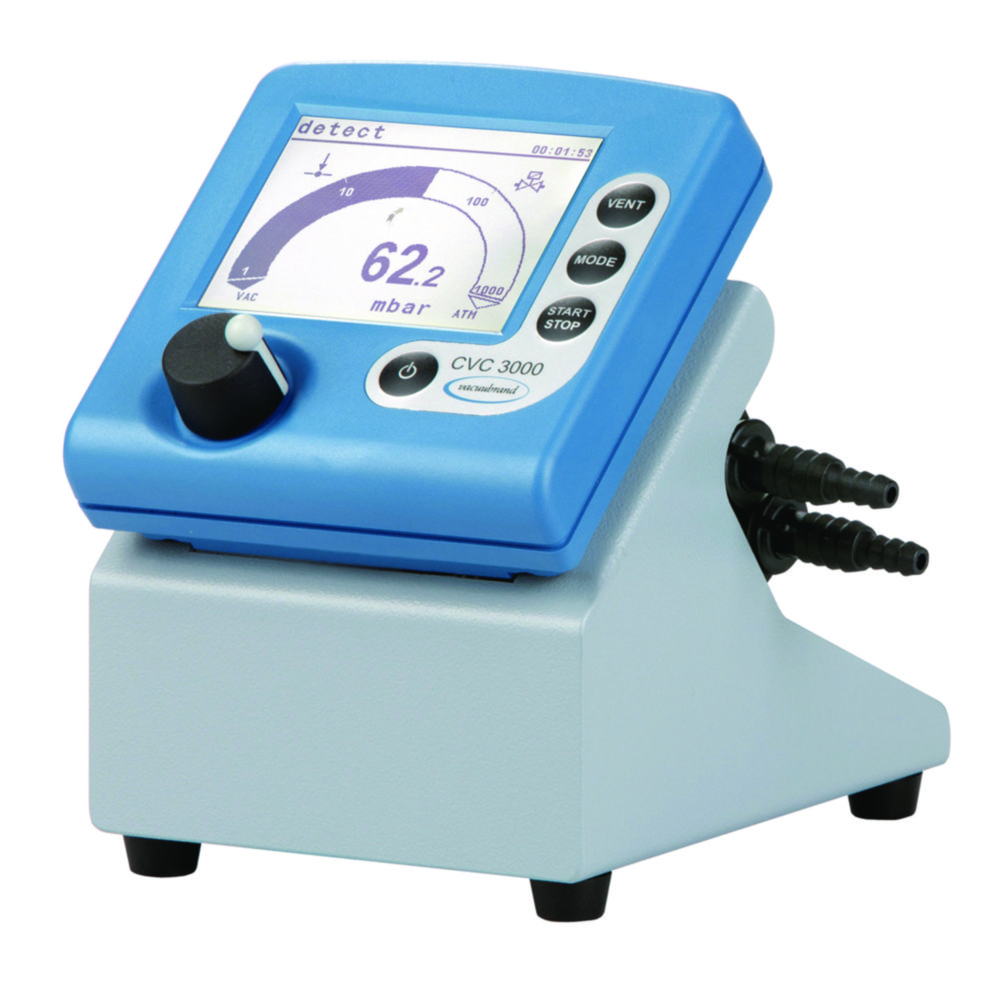 Supplied with: Vacuum Controller CVC 3000 detect with vacuum valve, ventilation valve, back-pressure valve, power supply and bench top holder or stand mounting.