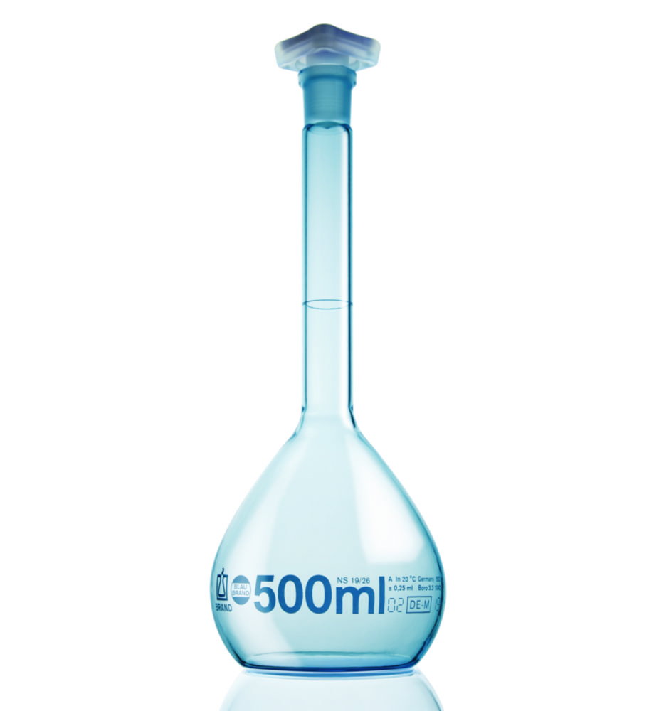Volumetric flask 1000 ml, class A BLAUBRAND®, NS-PP-stopper, NS 24/29, plastic coated, with one batch certificate