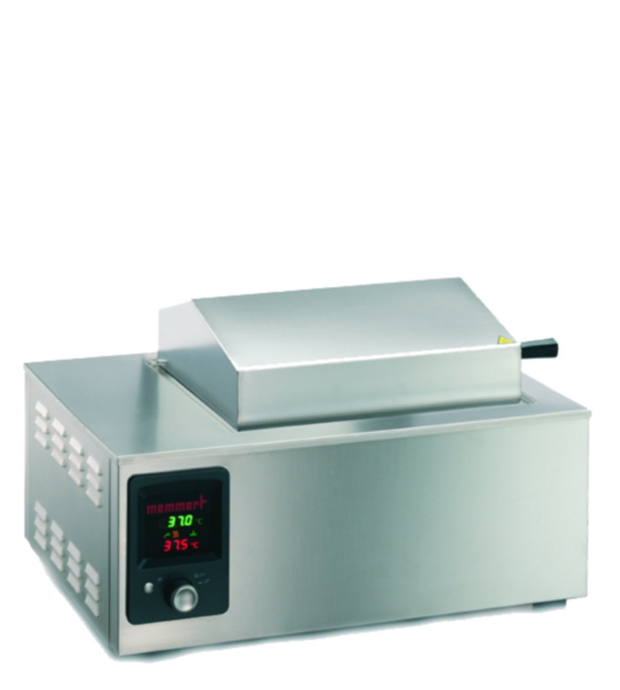 Water bath with natural ciculation and temperature controller EXCELLENT with 3-fold overtemperature protection, filling level control and calibration option.