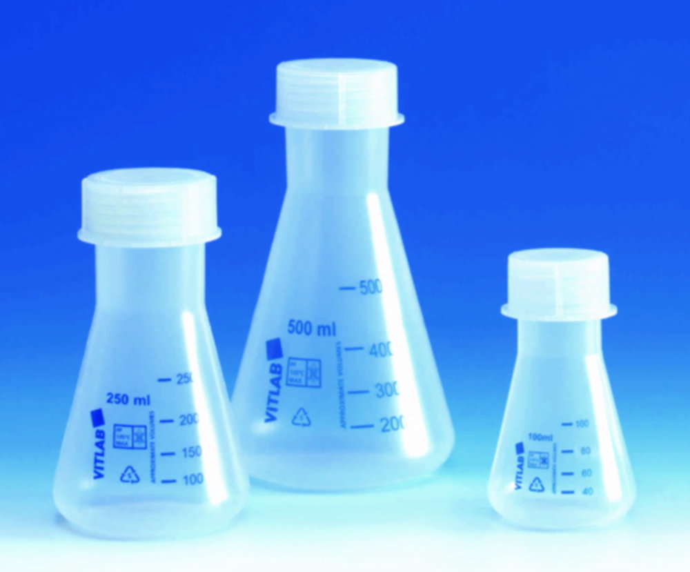 Wide-mouth-Erlenmeyer flasks, PP, with screw neck