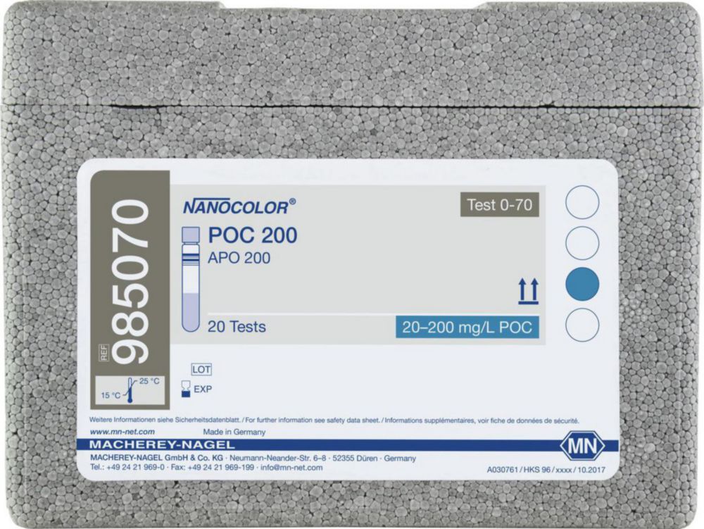 The Macherey-Nagel Nanocolor POC 200 Tube Test is designed for fast and accurate water testing. Each pack contains 20 tests, each equipped with a barcode for easy tracking and inventory management. These high-quality tests are ideal for field applications and provide reliable results for various water quality parameters. Perfect for laboratories, environmental monitoring, and field testing, the Nanocolor POC 200 Tube Test offers precision and convenience in one compact solution.