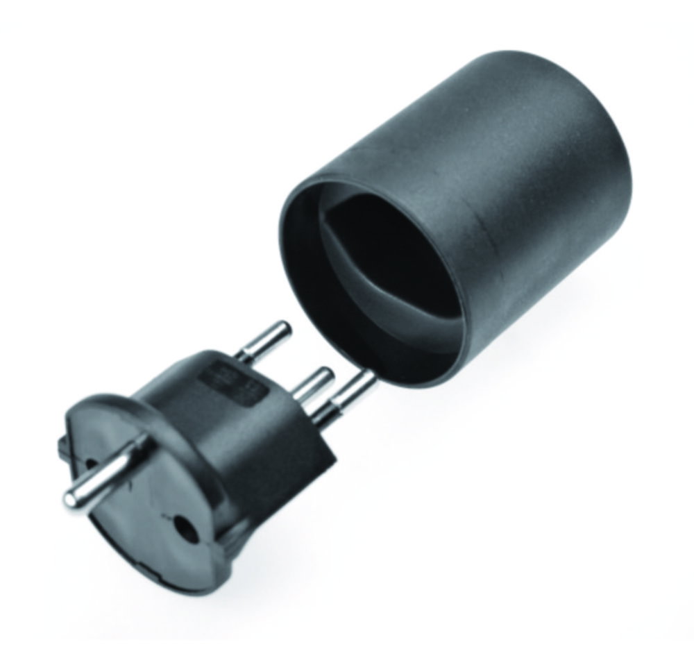 9.726 001: One-way plug adapter from plug with additional earthing contact (CEE 7) to plug Swiss version type 12 ("non rewireable")