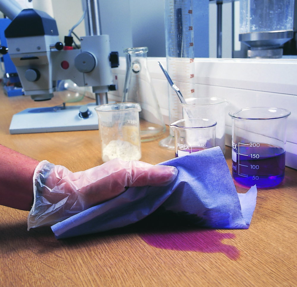 Perforated, blue Airflex*material. Bulky wipes with excellent absorption capacity and wet strength. For cleaning-up large spillages and suitable for most surfaces.